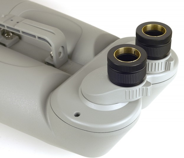 ein Photostativadapter mit 3/8" Gewindeanschluss und 2 Okulare mit 30-facher Vergrößerung.