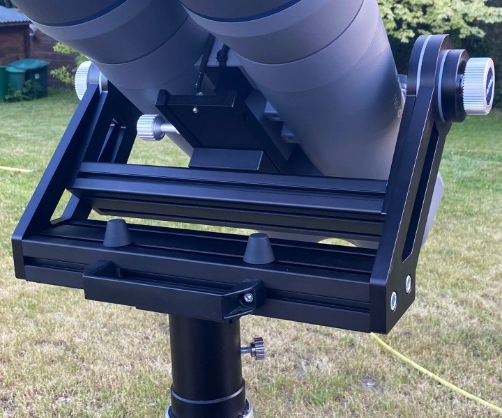 Wer mit 6" monokular beobachtet (das machen viele Anateure), wird mit einem binokularen Anblick sicher sehr überrascht sein, welchen Zuwachs an Details zwei Augen ermöglichen. Die binokulare Beobachtung fördert die natürliche Leistung zur Assoziation schwächster Details durch das Gehirn. Der Zugewinn an "Information" ist also mehr als proportional! Das Resultat: M31 zeigt bereits deutlich Strukturen, der Orionnebel selbstredend (beste Ergebnisse mit Nebelfiltern!), Details im Cirrus werden sichtbar, M13 ist aufgelöst, und so könnte man die Liste fortführen. Dieses Gerät ist kein Spielzeug und daher auch für die sehr ernste astronomische Arbeit vollends geeignet. Dieses Bino ist mit 2" Okularaufnahmen ausgestattet, also universell bei der Wahl der Okulare.