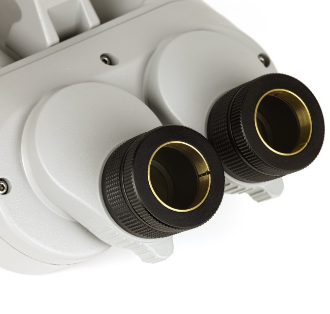 Dieses 45° SA-Großfernglas bietet ein exzellentes Preis-Leistungsverhältnis. Der 45° Einblick sowie die 1¼" Okularhülsen machen dieses Glas sehr universell nutzbar. Die 45°-Variante ist sowohl für die astronomische Beobachtung, als auch für Natur- und Erdbeobachtungen sehr gut geeignet und ergonomisch. Sie können die Vergrößerung durch Wechseln von Okularsätzen verändern. Die Fokuslage wurde so gewählt, dass Tele Vue Delos, Nagler, Panoptik, sowie das Docter 12.5mm UWA Okular fokussiert werden können. Dieses Modell ist auch mit 90° Einblick erhältlich.