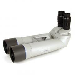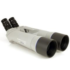 Die Semi-Apo-Objektive aus Spezialgläsern ermöglichen eine farbreine, unverfälschte Abbildung mit hohem Kontrast. Das Gehäuse ist wetterfest und die Stabilität des Magnesiumgehäuses ist beeindruckend. Ausziehbare Taukappen schützen die Objektive auch bei langen Beobachtungen vor Taubeschlag und können bei Tage als Seitenlichtblende dienen. Dieses Fernglas verfügt natürlich über einen Stativanschluß sowie einen robusten Tragegriff. Diese Geräteklasse kann noch problemlos auf Fotostative montiert werden. Natürlich können mit diesen Geräten auch terrestrische Ziele bestens beobachtet werden. Durch den Okularwechsel sind diese Ferngläser wesentlich flexibler als festvergrößernde Modelle.