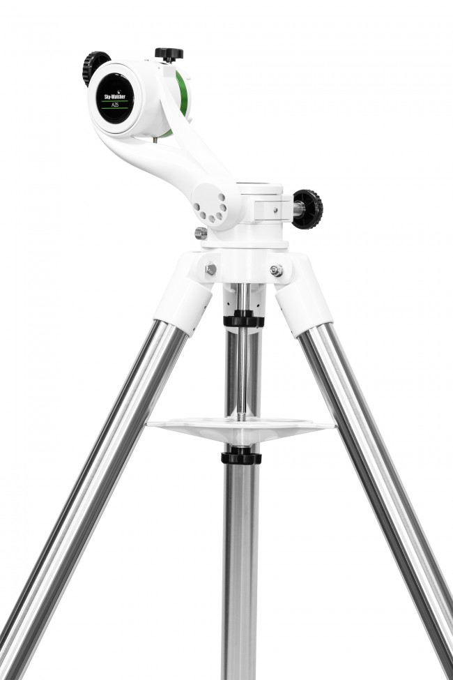Die AZ5 besteht aus dem Einarm Kopf mit Vixenklemme und Feintrieben in beiden Achsen, sie ist auf einem stabilen Edelstahl-Stativ montiert, dies entspricht dem EQ5-Stativ, es ist jedoch ohne Nord-Dorn ausgeführt.