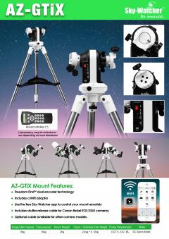 AZ-GTiX, die neue Reisemontierung von Sky-Watcher ermöglicht die Verfolgung von Objekten mit zwei Instrumenten, die man in den zwei seitlichen Vixen Klemmen befestigen kann.
