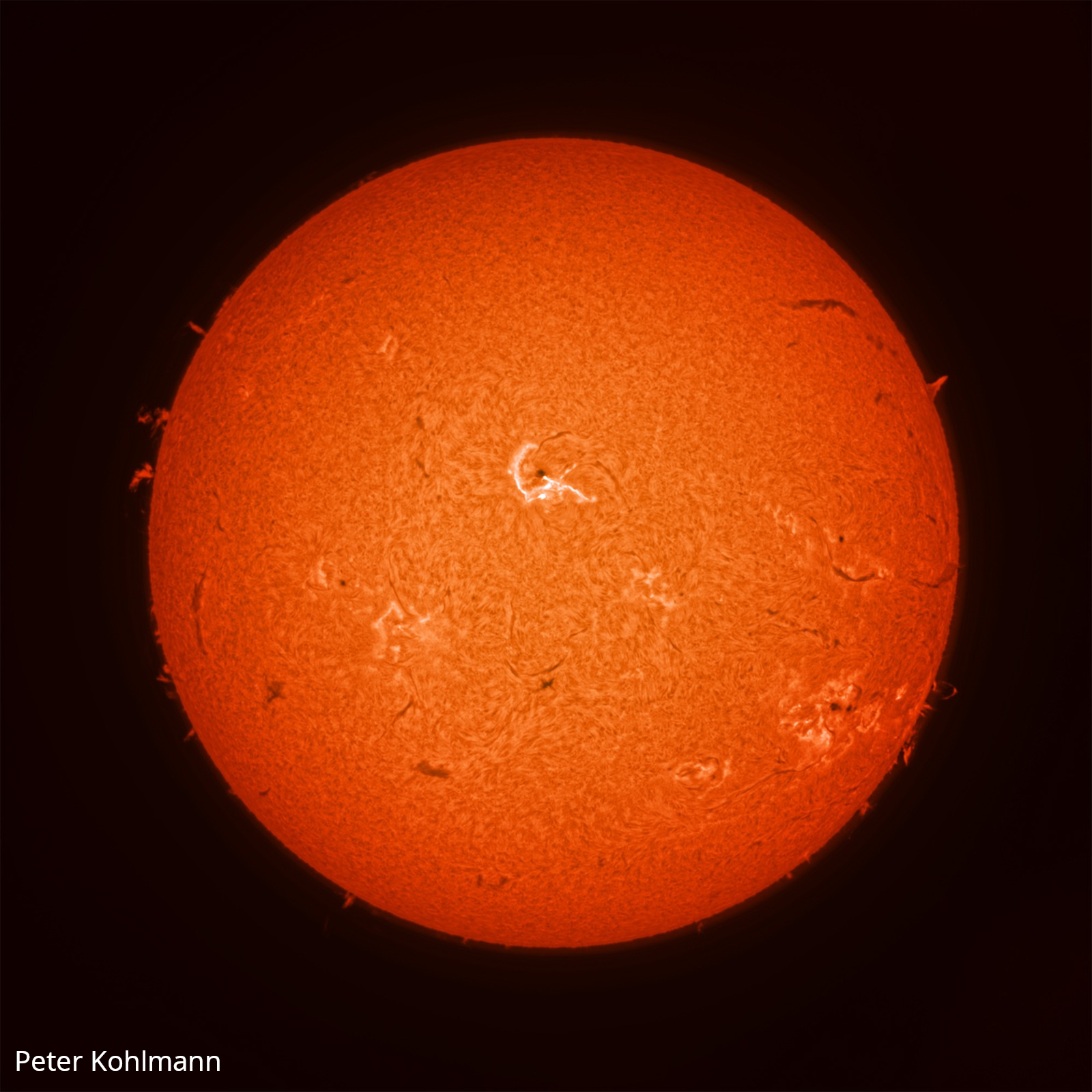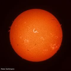 Dieses Bild wurde von unserem Mitarbeiter Peter Kohlmann mit dem neuen Acuter S80 H-Alpha Sonnenteleskop mit einer Lacerta DSPro2600m Kamera aufgenommen und demonstriert die hervorragende Kontrastleistung dieses Sonnenteleskops.