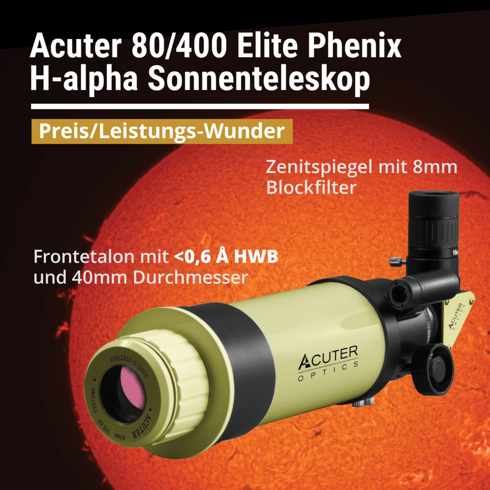 Das Neue Acuter S80 H-Alpha Sonnenteleskop ist ein Preis/Leistungs-Wunder.