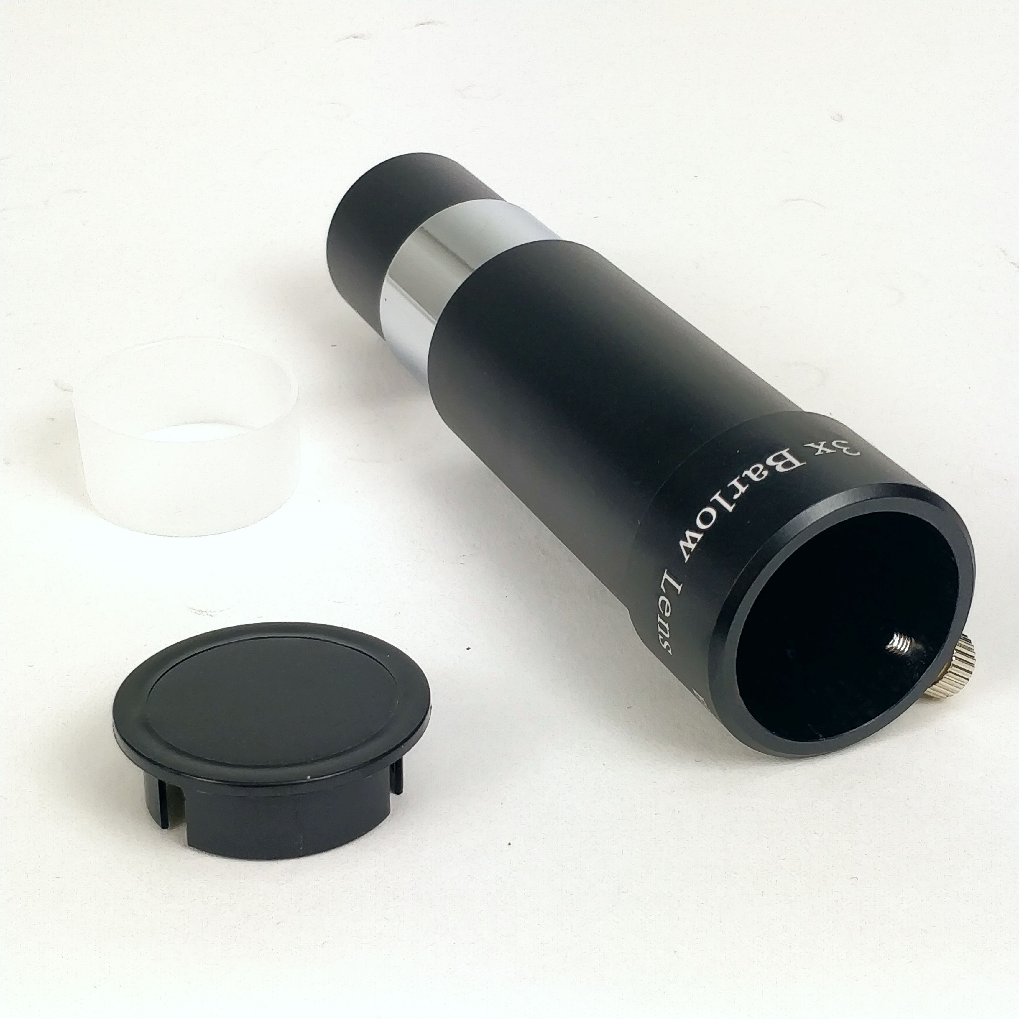 Das Barlow-Element kann von der Verlängerungshülse ausgeschraubt werden und durch verkürzten oder verlängerten Arbeitsabstand lässt sich die Vergrößerungsfaktor bis zu 5x variieren. Das System ist sehr tolerant auf das Arbeitsabstand - sogar direkt ins Okular kann eingeschraubt werden (wirkt mit etwa 1,6x Verlängerungsfaktor).