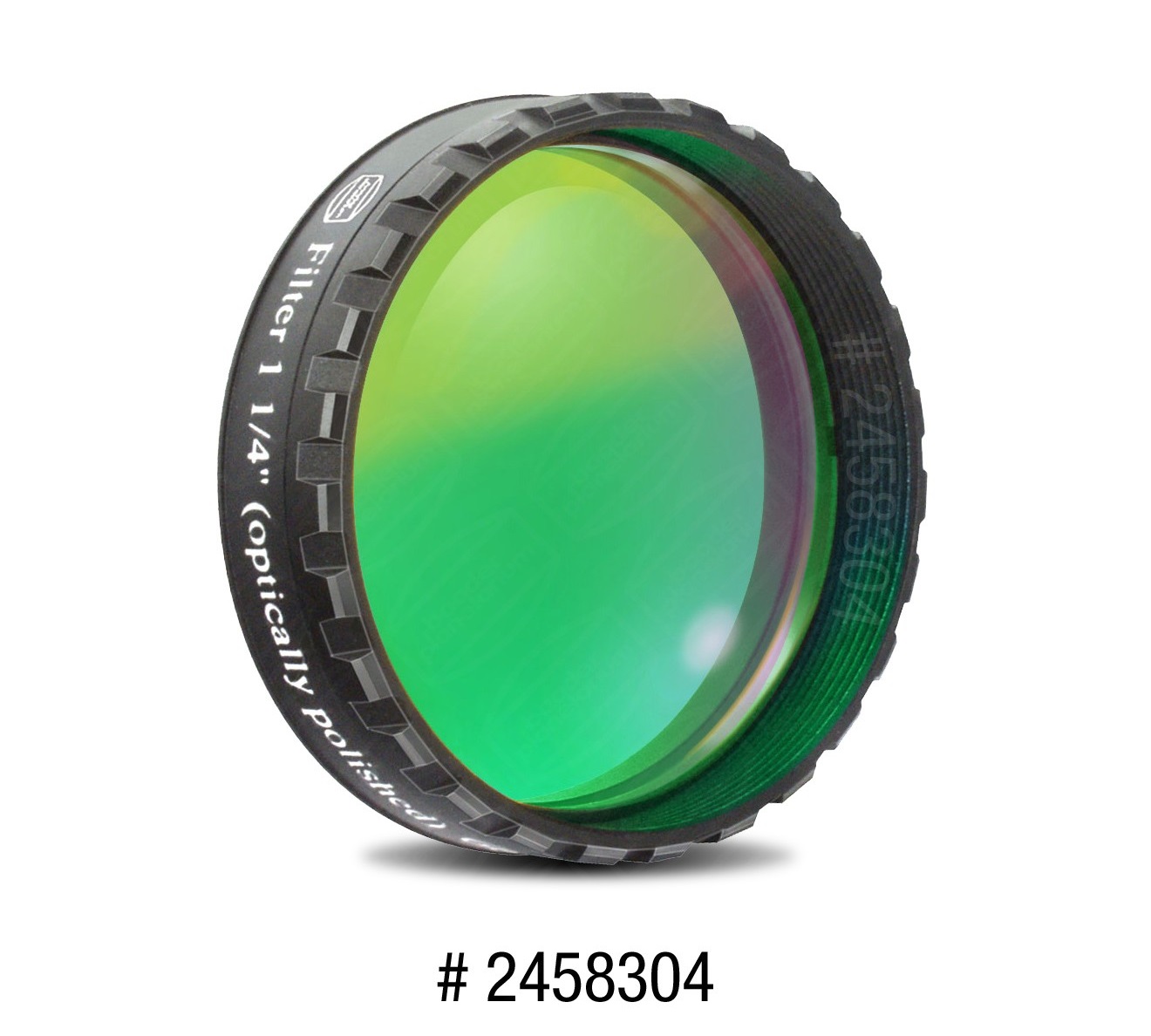 • Grüner Bandpass-Filter 500nm. Liefert die schärfsten Bilder bei achromatischen und halbapochromatischen Refraktorobjektiven (z.B. Doppelsternbeobachtungen)