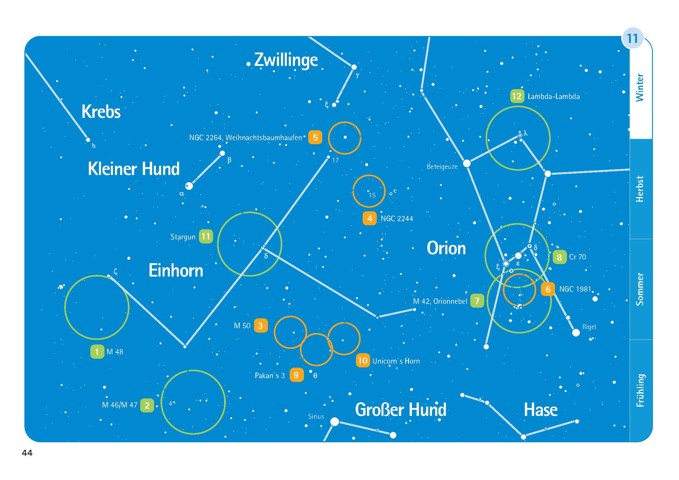 - 144 Objekte auf 12 Karten des nördlichen Himmels