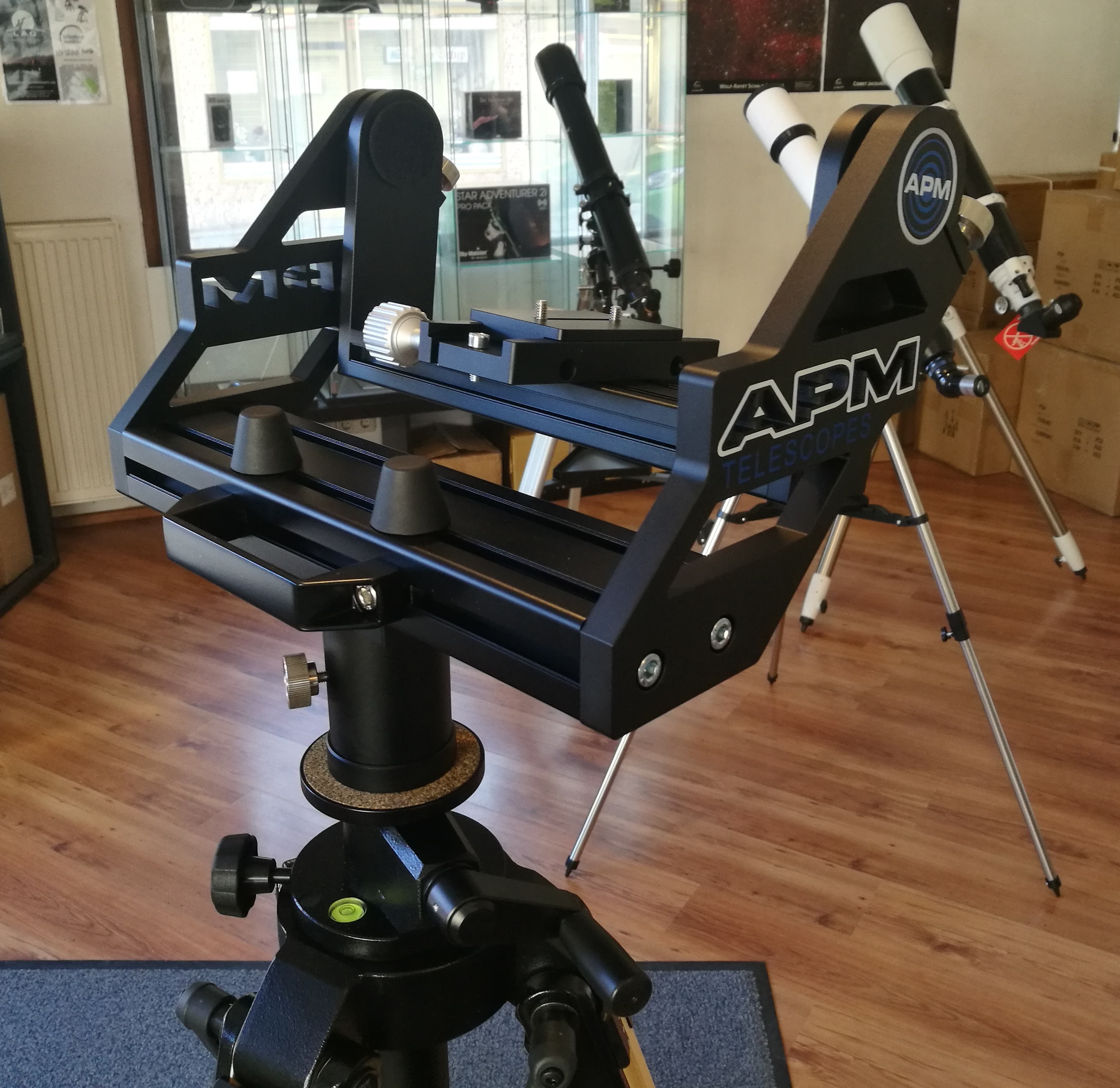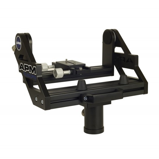 Die APM Gabelmontierung ist das Resultat intensiver praktischer Anwendung. Die optimalen, weichen Nachführbewegungen bei gleichzeitiger Schwingungsarmut gepaart mit hoher Tragfähigkeit sind unübertroffen. Durch die besondere Gabelform ermöglicht die APM Gabelmontierung freie Schwenks bis in den Zenit. Damit ist sie sowohl für die Astronomie als auch für die Naturbeobachtung perfekt geeignet.