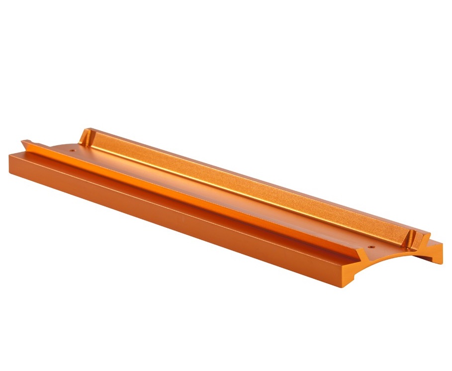 Orange eloxierte 3"-Schwalbenschwanz-Schiene (Losmandy-Style) zur Montage von C11 auf CGE-Montierungen.