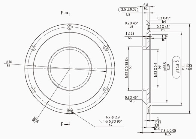 T2-Adapter für den ZWO CAA Kamerarotator, wird z.B. bei Verwendung der 7x36 Filterräder benötigt.