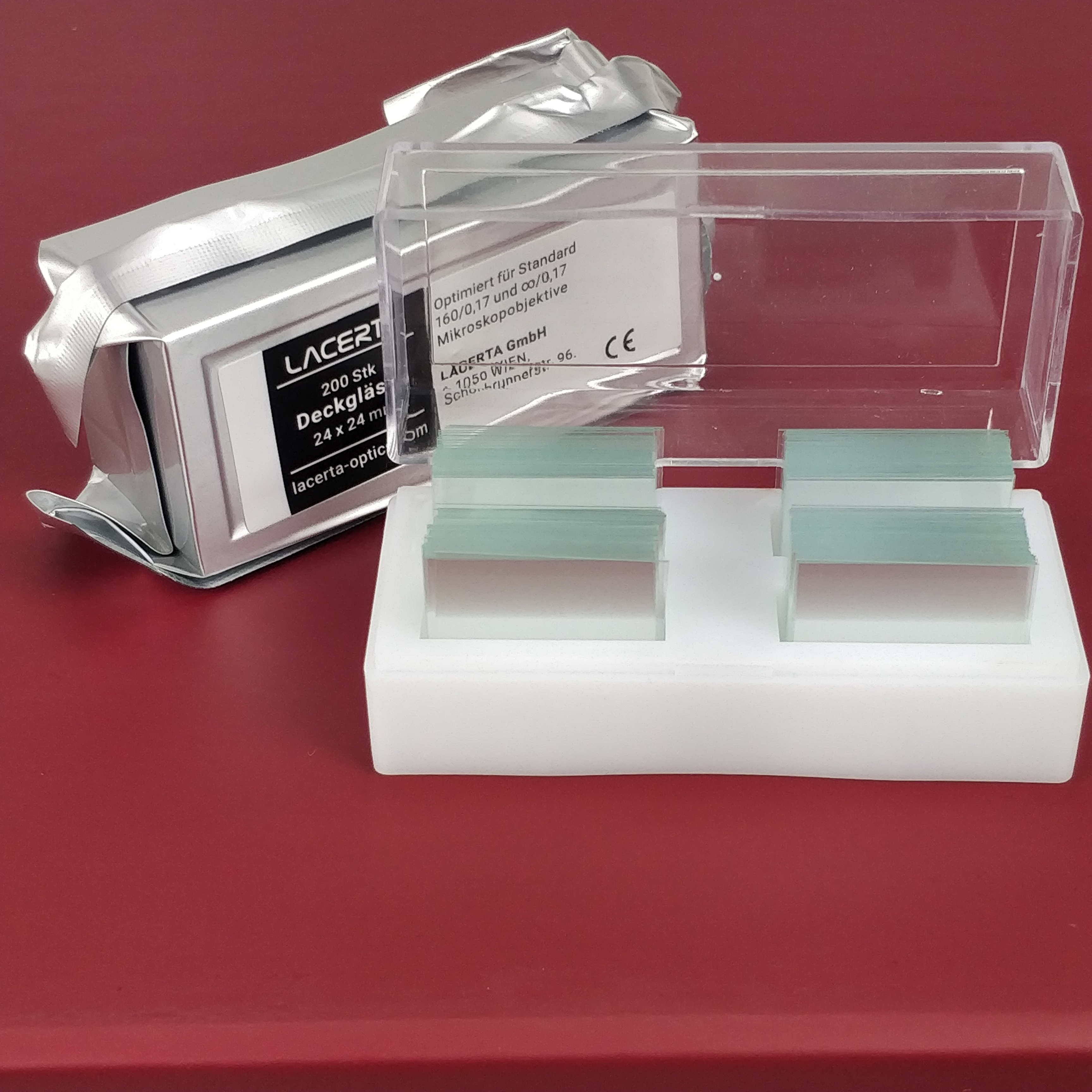 Diese Deckgläser wurden nach unserem Vorgaben mit höchstem Sorgfalt hergestellt. Nach dem letzten Herstellungsschritt wurden die Deckgläser nochmal gereinigt und in 4 separaten Gruppen je 50 Stk verpackt. Da die Deckgläser in der Verpackung stehend platziert sind, es ist leicht mit einem Hand (auch mit medizinischer Handschuhe) rauszunehmen. Es ist zwar das hochwertigste Deckplättchen in unserem Sortiment aber Dank Großpackung die preiswerteste (ein Deckplättchen kostet in 200-er Verpackung etwa 5 cent - im Vergleich sind andere Objektträger in 100-er Packung zwischen 6 und 7 cent)
