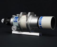 Völlig neue Wege beschreitet Takahashi bei der mechanischen Konstruktion. Der Auszug wurde vom Sky-90 übernommen und stellt praktisch den dicksten Teil des Teleskops dar. Das ist notwendig, um den optionalen Reducer aufnehmen zu können, er wird weitgehend im Okularauszug versenkt. Der große Auszug ist jedoch ein willkommener Pluspunkt, er verträgt mehr Zuladung als die kleineren Auszüge des FOA-60 und FS-60. Sehr erfreulich ist zudem, dass er nun bereits werkseitig über einen 2 Zoll Anschluss verfügt. Die Mikrountersetzung MEF-3 kann nachgerüstet werden.
