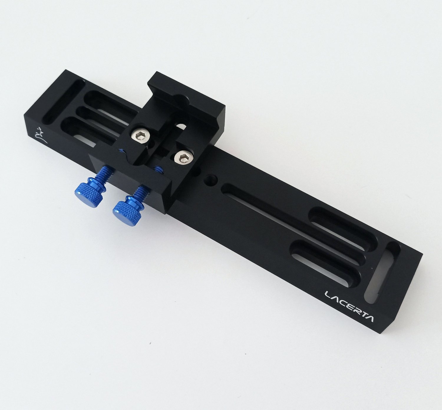 Diese Geräte haben einen sehr kurzen Tubus von nur knapp über 80mm Länge, dementsprechend sind in den Lacerta-Paketen kurze Schienen verbaut, jedoch können diese kurzen Geräte schnell hecklastig werden. Besonders mit schweren Kameras benötigt man eine längere Schiene, auch die großen Fluorit-Reducer sind nicht gerade Leichtgewichte.