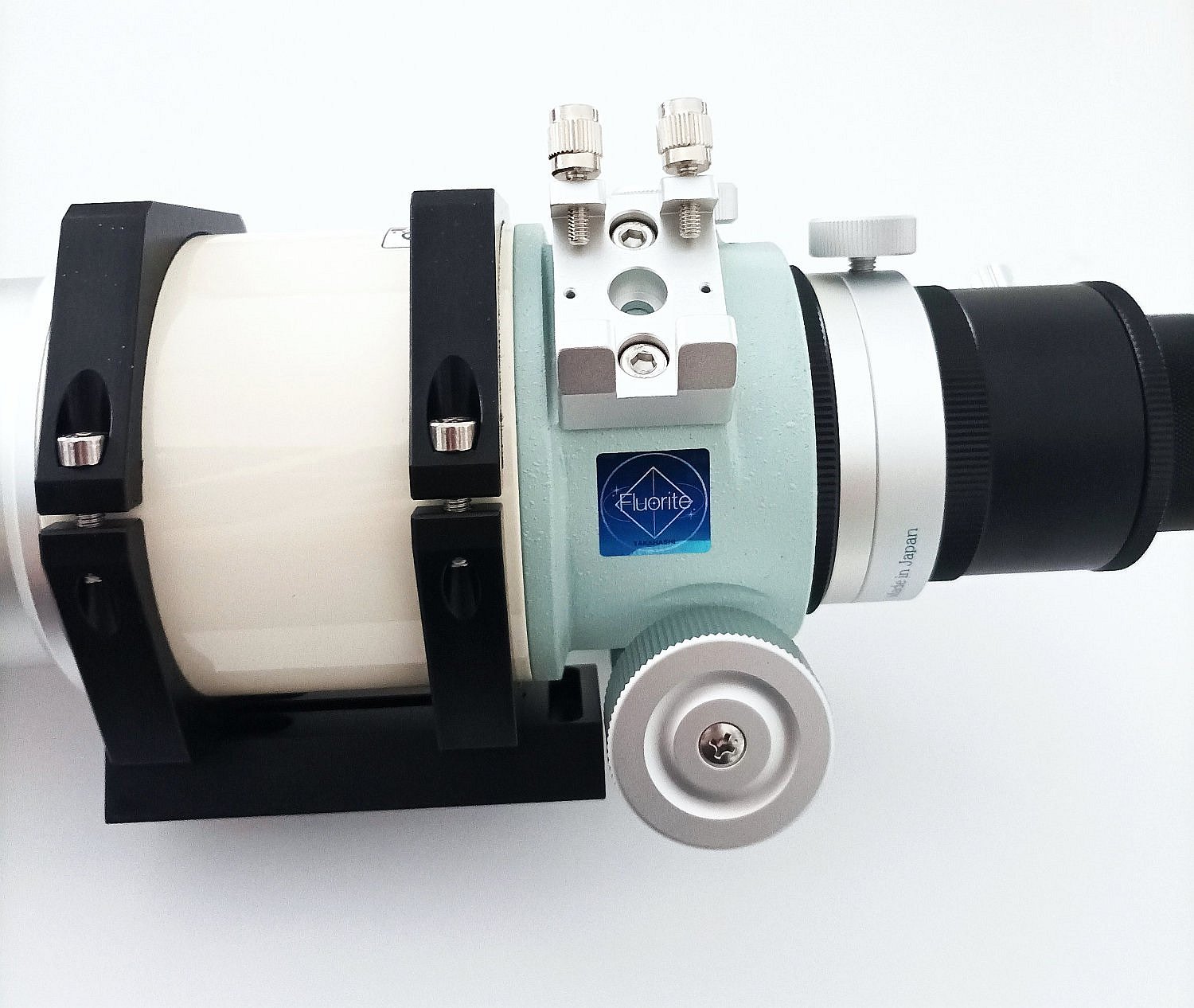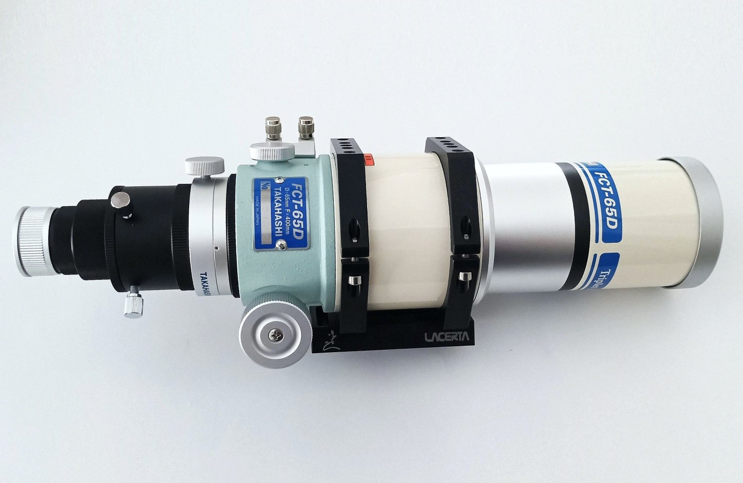 Den neuen 65mm Fluorit Triplet Apo (FCT-65D) bieten wir auch mit den preiswerten Lacerta-Rohrschellen und passender Vixen-Schiene