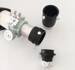 Für den FOA-60 gibt es auch einen passenden Flattener (2 Linsen in 2 Gruppen), dieser reduziert die Brennweite minimal um den Faktor 0,93x auf 495mm (f/8,2). Er ist für Vollformat ausgelegt bei Spot-Größen von unter 10 Mikrometer über das ganze Feld. Eine ideale Kombination für Sonnenfinsternisse um die Korona abzubilden oder natürlich für die Fotografie großflächiger DeepSky-Objekte, jedoch auch als Hochleistungs-Tele für die Naturfotografie. Bei Verwendung des Q-Modules, ist der Flattener nicht zu verwenden, das Q-Modul ebnet das Bildfeld selbst! Für mehr Brennweite gibt es unterschiedliche Teleextender, es können der ED-Extender 1.5x sowie der Extender-Q 1.6x verwendet werden, beide mit 2" Steckhülse, außerdem natürlich auch die Ortho-Extender 2-fach und 4-fach.