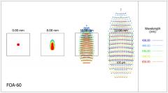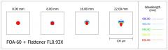 Das optische Design des FOA-60 ist ein völlig anderes, als bei den älteren Fluorit-Apos und verspricht eine noch bessere Korrektur und extrem hohe Strehl-Werte über das gesamte visuelle Spektrum. Die Frontlinse ist aus Fluorit, das zweite Element aus Kronglas, wie auch bei den größeren TOA Modellen, hat der FOA-60 einen sehr großen Luftspalt. Mit diesem neuen Design, das hier erstmalig angewendet wurde, wurde ein 2-Linser geschaffen, der praktisch keine chromatischen Aberrationen erzeugt.