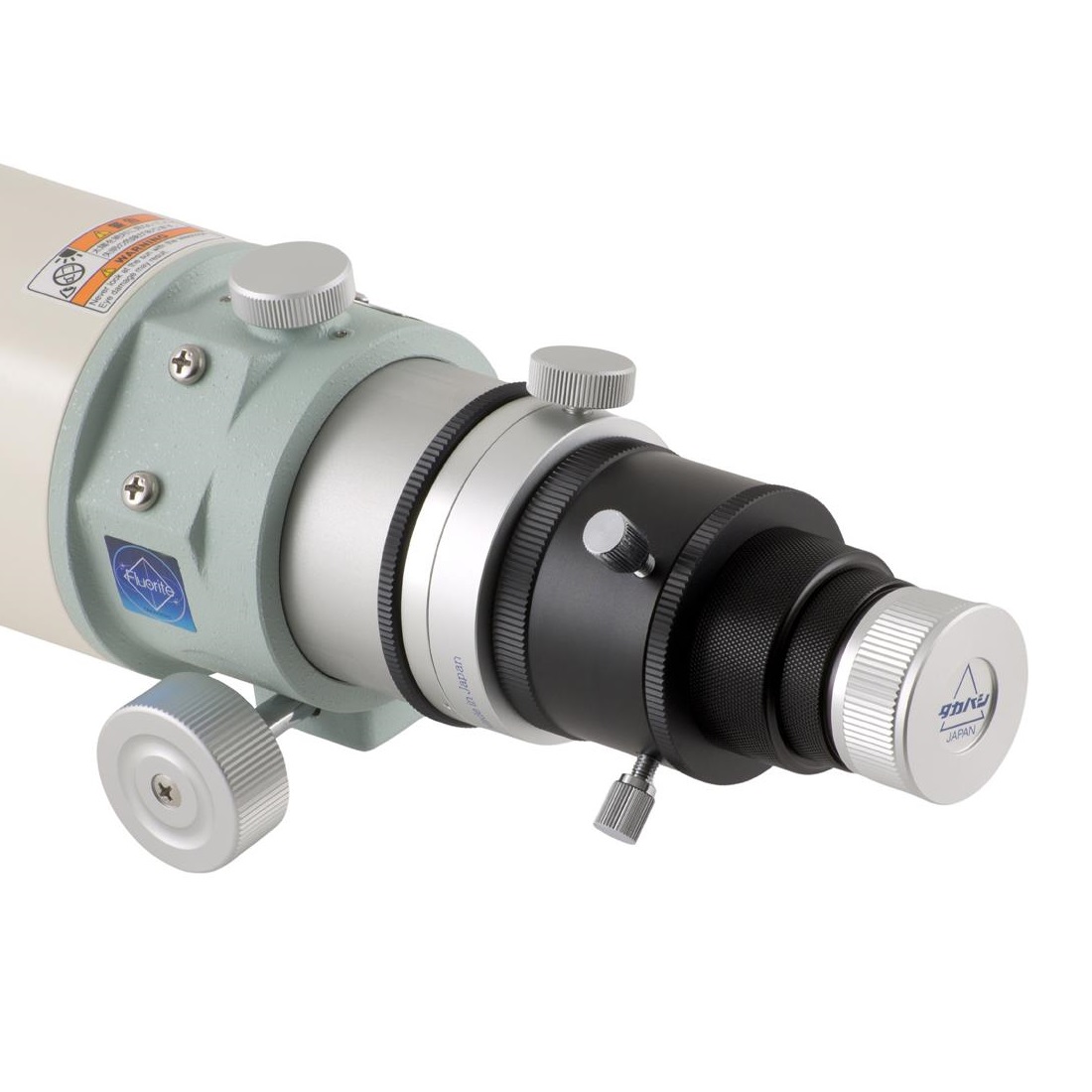 Der praktische Bildfeldrotator CAA-S ist beim Tubus schon enthalten, er kann natürlich bei allen fotografischen Kombinationen verwendet werden, auch beim großen Fluorit-Reducer. Jedoch macht er auch visuell Sinn, so kann der Zenitspiegel ganz einfach in die bequemste Position gedreht werden. Am Auszug können Takahashi-Sucher montiert werden, mit der kupTak-Klemme können auch welche anderer Hersteller befestigt werden. Der Auszug ist mit der MEF-3 Untersetzung nachrüstbar.