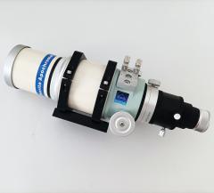 Das verbreitete und bewährte FS-60 Objektiv gibt es auch mit dem größeren Tubus des FCT-65D, der stärkere Auszug verträgt mehr Zuladung - eine gelungene Weiterentwicklung dieses kleinen Zweilinsers! Auch ihn bieten wir mit den preiswerten Lacerta-Rohrschellen und passender Vixen-Schiene an. Wegen des kurzen Tubus ist eine 10cm Prismenschiene verbaut, bei Bedarf kann mit einer optionalen Balance-Schiene aber deutlich mehr Spielraum geschaffen werden. Eine Universal-Sucherklemme ist montiert, sie kann die Standard Sucher bzw. Guidescopes von Lacerta oder SkyWatcher aufnehmen. Weiteres passendes Zubehör finden Sie weiter unten aufgelistet