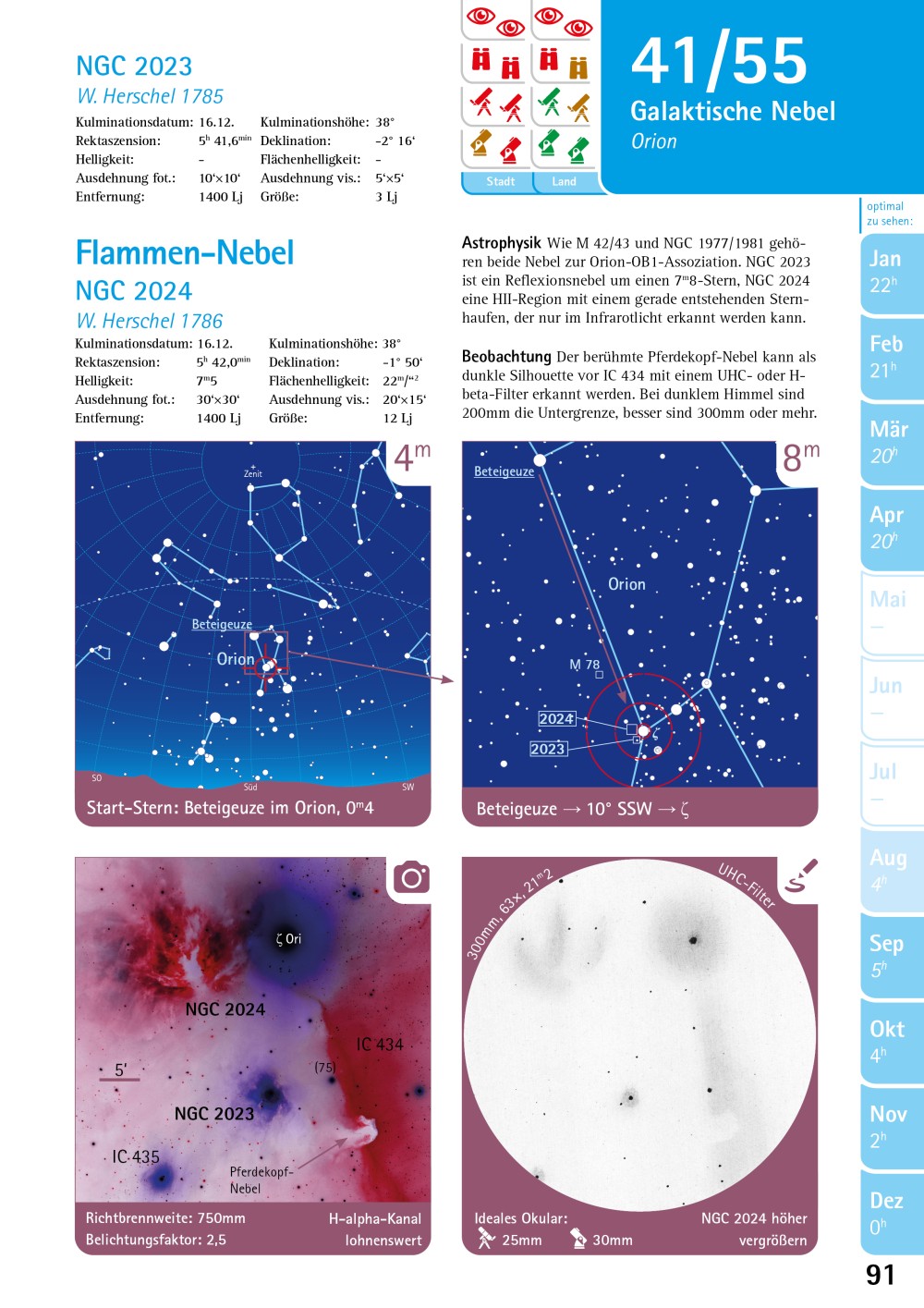 - Reihenfolge nach optimalem Beobachtungszeitpunkt im Jahr