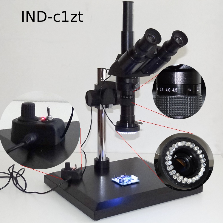INDc1f | IND-C1F photographical industrial material inspection zoom microscope (7-45x, upgrade up to 3.5-90x) with 90mm working distance | 589.90 EUR | |