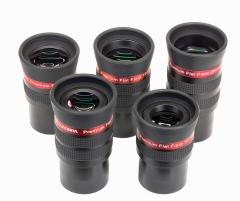 Die Okulare bestehen aus 4, 5 oder 6 Linsenelementen, die in 3 oder 4 Gruppen angeordnet sind. Alle optischen Oberflächen sind mit einer hochwertigen FMC-Antireflexionsbeschichtung versehen, was zu einer sehr hohen Transmission, Bildschärfe und Kontrast führt. Sie können nicht nur für die Deepsky Beobachtung, sondern auch für Planeten und Doppelsterne verwendet werden.