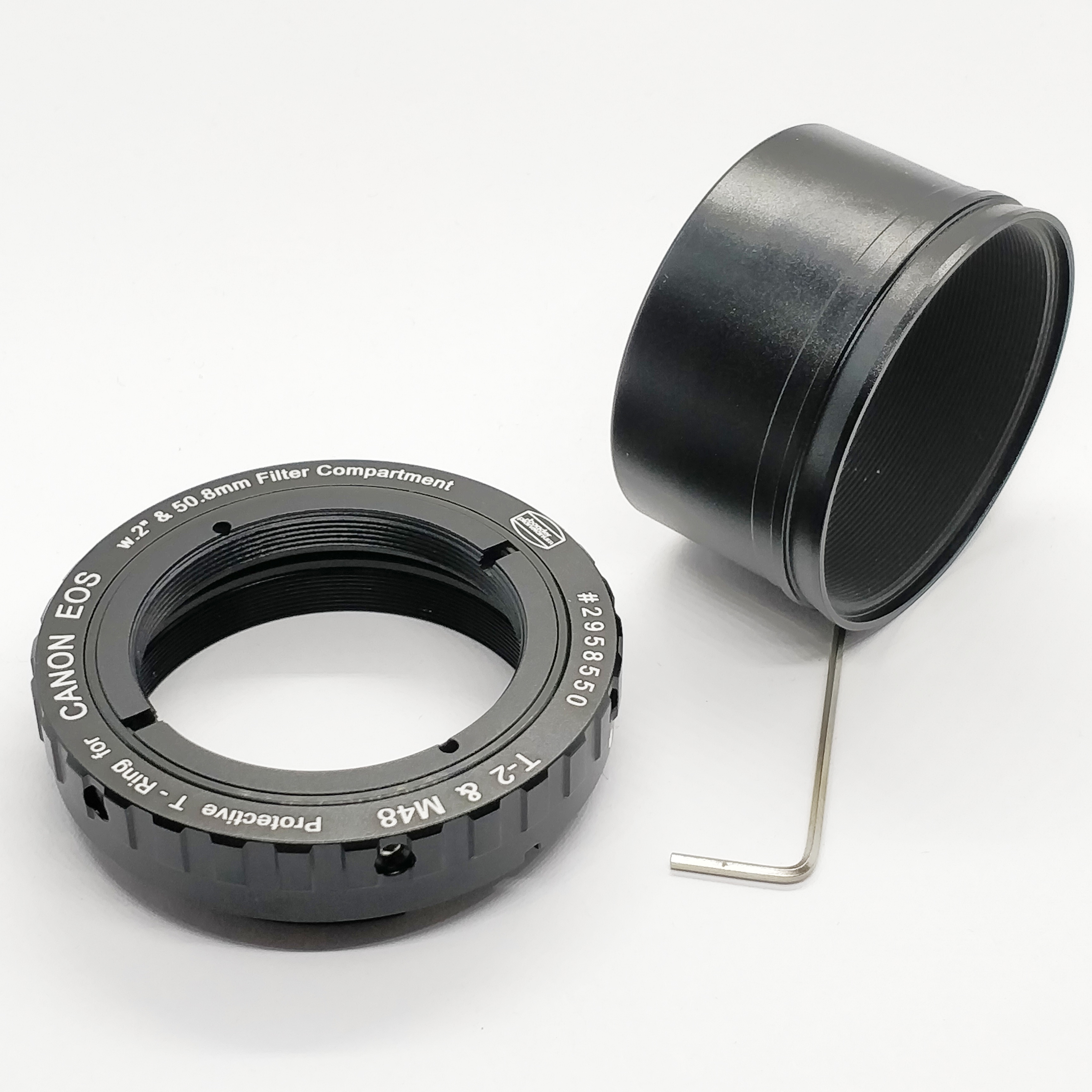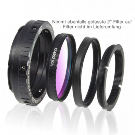 Der Protective T-Ring for Canon EOS ermöglicht bei größtmöglichem freien Durchlass von 47.3 mm (M48 Gewinde) beliebige 2" und 50,4mm Baader-Filter in den T-Ring zu verbauen und so den Canon- Kamerakörper vor Staub und Feuchtigkeit zu schützen. Damit Sie den optimalen Nutzen aus Ihrem Protective T-Ring ziehen können, sind mehrere Versionen des Protective T-Rings bereits mit eingebautem Baader 50,4mm x 3mm Filter lieferbar