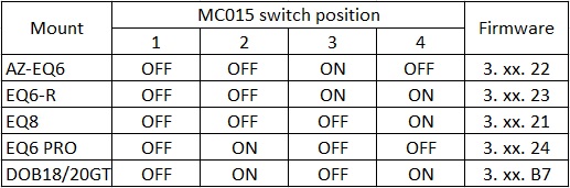 Achtung, für die EQ8R müssen alle 4 Micro Schalter auf OFF gestellt werden!