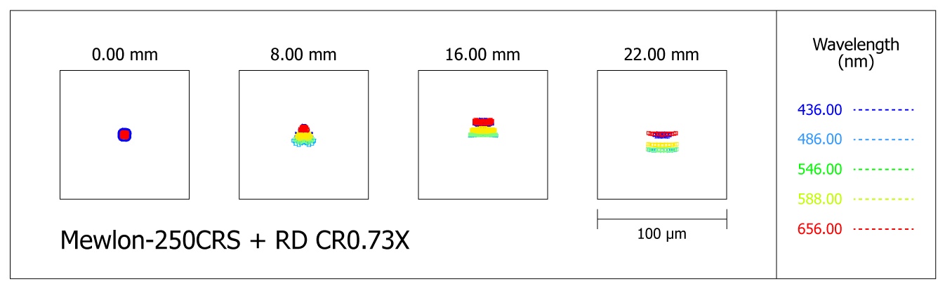 The CRS models incorporate a field corrector with ED glass lenses that provides a F/10 focal ratio but above all a higher corrected field than on conventional Mewlon telescope. The motorized focusing, ASCOM compatible, is done by translating the secondary mirror. The fans responsible for heating the primary mirror are managed by 3 temperature sensors located inside and outside the tube.