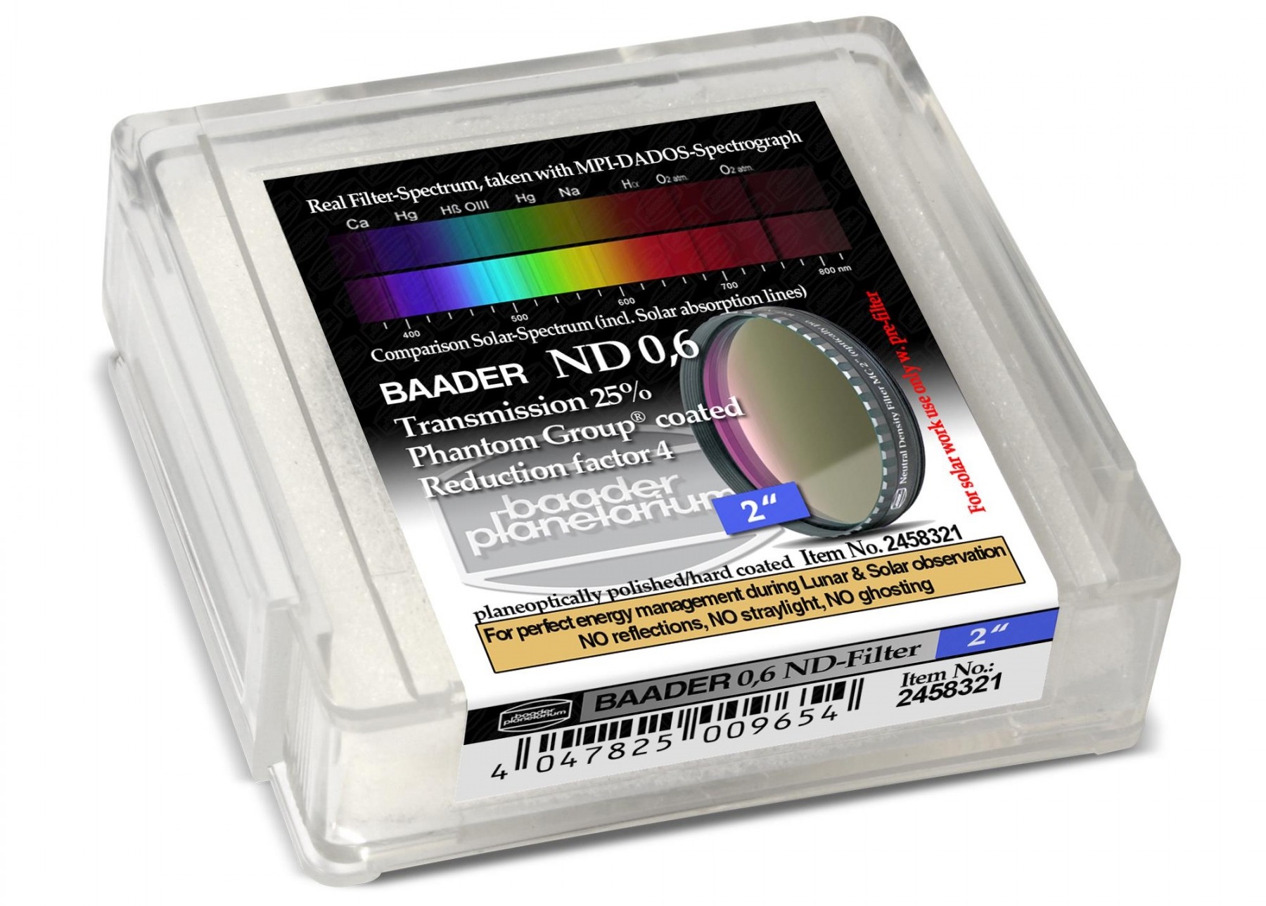 ND06ba | Baader Neutral Moon filter ND0.6 (25% transmission, M28.5x0.6) | 48.00 EUR | |