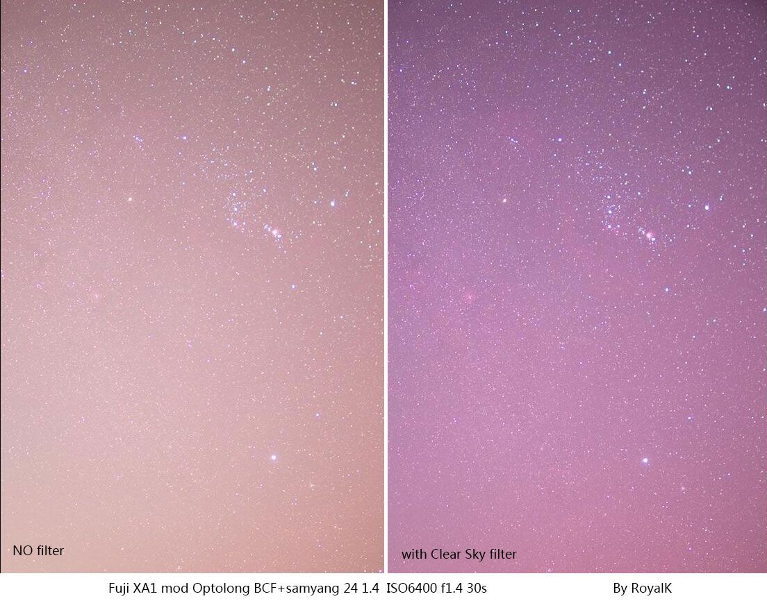 Optolong Clear Sky Filter is the first new item in 2017 from Optolong Optics Co.,Ltd.Clear Sky blocks the city Na and Hg light pollution so that improve contrast effectively.The main point of this filter that differ with other filter, its front facing,77mm, you can twist it in front of camera lens directly like UV lens. More important is its performance, no wavelength shifting, no color gradient through the Images.