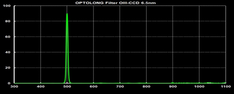 der wirkungsvollste OIII Filter für visuelle Beobachtung am Markt! Schmalbandfilter für O-III - CWL bei 500nm, 80% Transmission, 0.1% im Offband