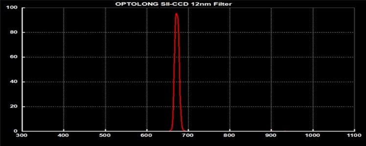 Schmalbandfilter für S-II - CWL bei 672nm, 90% Transmission, 0.1% im Offband