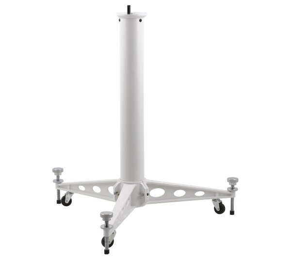 Das massive Rohr hat 102mm Durchmesser und garantiert Standfestigkeit, die drei Beine mit Rädern erlauben es, die Säule, über kurze Strecken schnell zu bewegen. Für einen einfacheren Transport über längere Strecken, lassen sich die Ausleger auch abmontieren.
