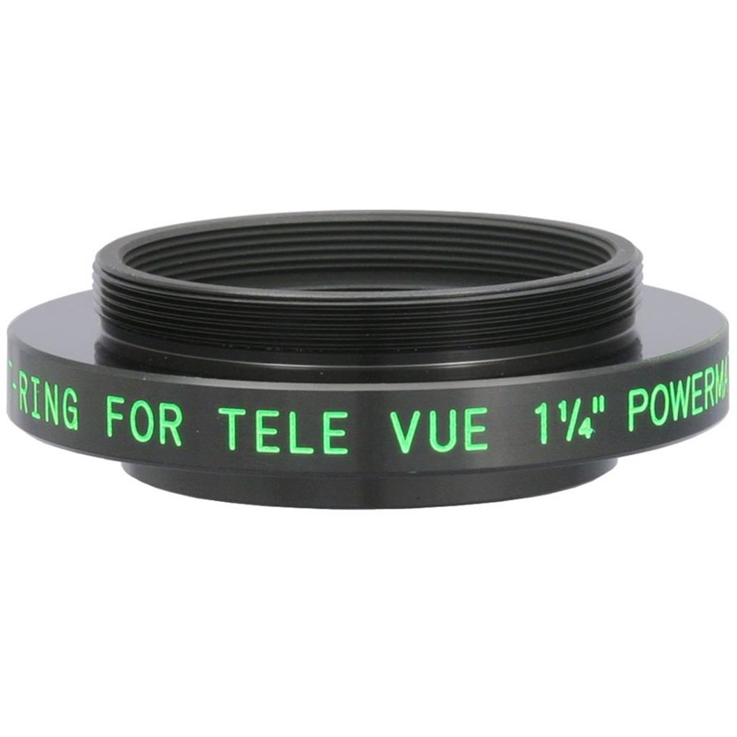 Mit diesem kurzen Adapter kann eine Kamera mit T2-Bajonettring an den 1,25" TeleVue Powermates 2.5x und 5x angeschlossen werden. Die Okularklemme wird ersetzt, die Kamera mit dem Bajonettring wird fest verschraubt, somit sind Verkippung oder Dezentrierung ausgeschlossen. Durch die kürzere Gesamtlänge wird auch der Hebel kleiner und der Okularauszug weniger belastet. Da die Powermates telezentrische Systeme sind, hat der Abstand Barlow - Kamera keinen Einfluss auf die Gesamtvergrößerung, mit diesen Adaptern erreicht man daher die gleichen Brennweiten, wie wenn die Kamera an der Okularklemme angeschlossen werden würde.