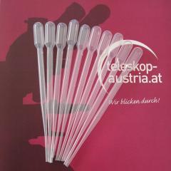 10 Stück Einweg-Pipetten aus weichen Kunststoff, die Pipetten haben bei 0.5ml, 1ml, 1.5ml und 2ml Markierungen.