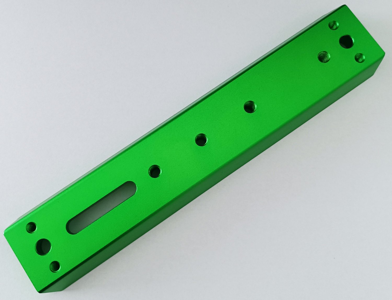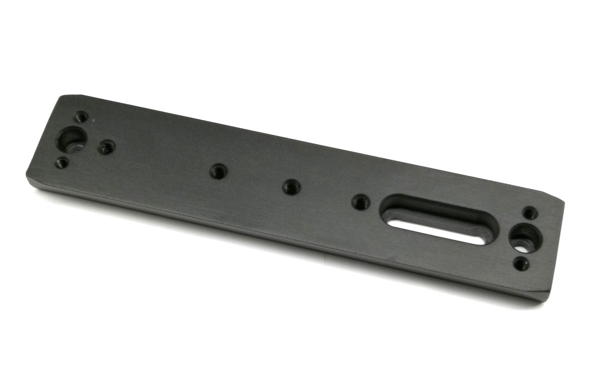 An den Enden sind Löcher für M6 oder 1/4 Zoll Schrauben zum Befestigen von Rohrschellen, der Abstand beträgt 184mm. Es finden sich weitere Gewinde und Löcher für individuelle Montagen, auch ein Langloch ist vorhanden.