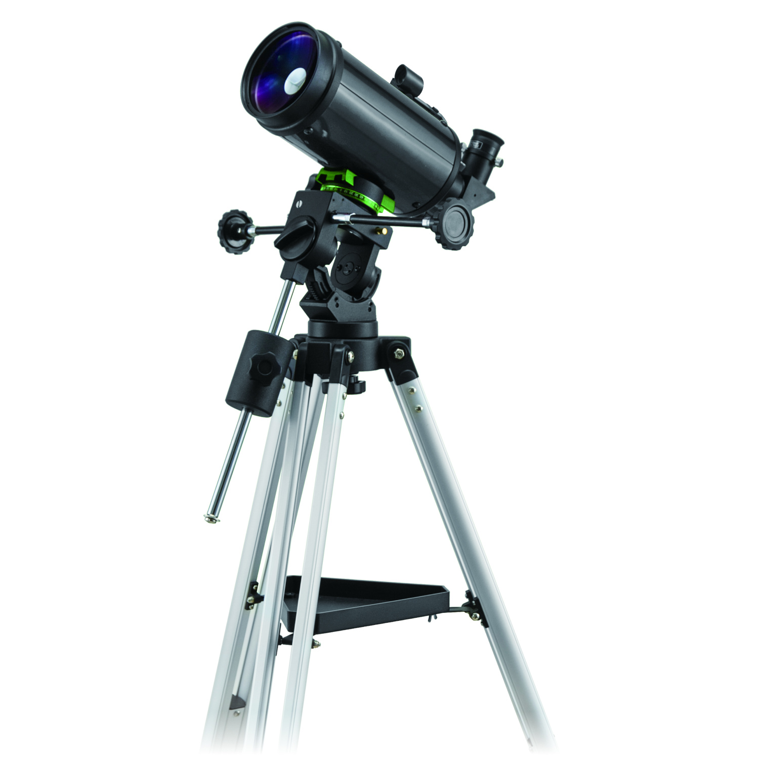 SkyWatcher Skymax-90 Maksutov-Cassegrain (90/1250) on CQ40 mount (Red Dot Finder, 25mm (50x) and 10 mm (125x) eyepieces, star diagonal)