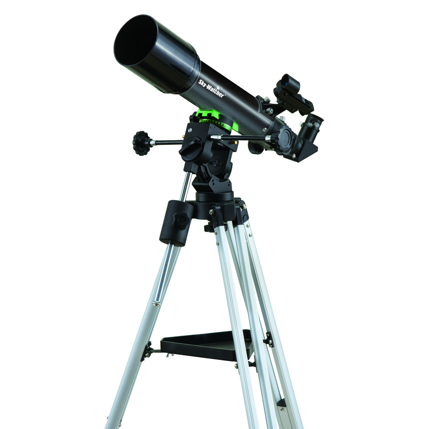 SkyWatcher Mercury-705 (70/500) refractor on CQ40 mount with StarPointer, Barium25 (20x) and Barium10 (50x) eyepieces, star diagonal