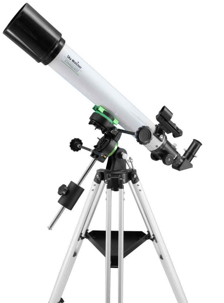 SkyWatcher StarQuest-707R (70/700) refractor on StarQuest (with Starpointer, 25mm (28x) and 10mm (70x) Barium eyepieces)