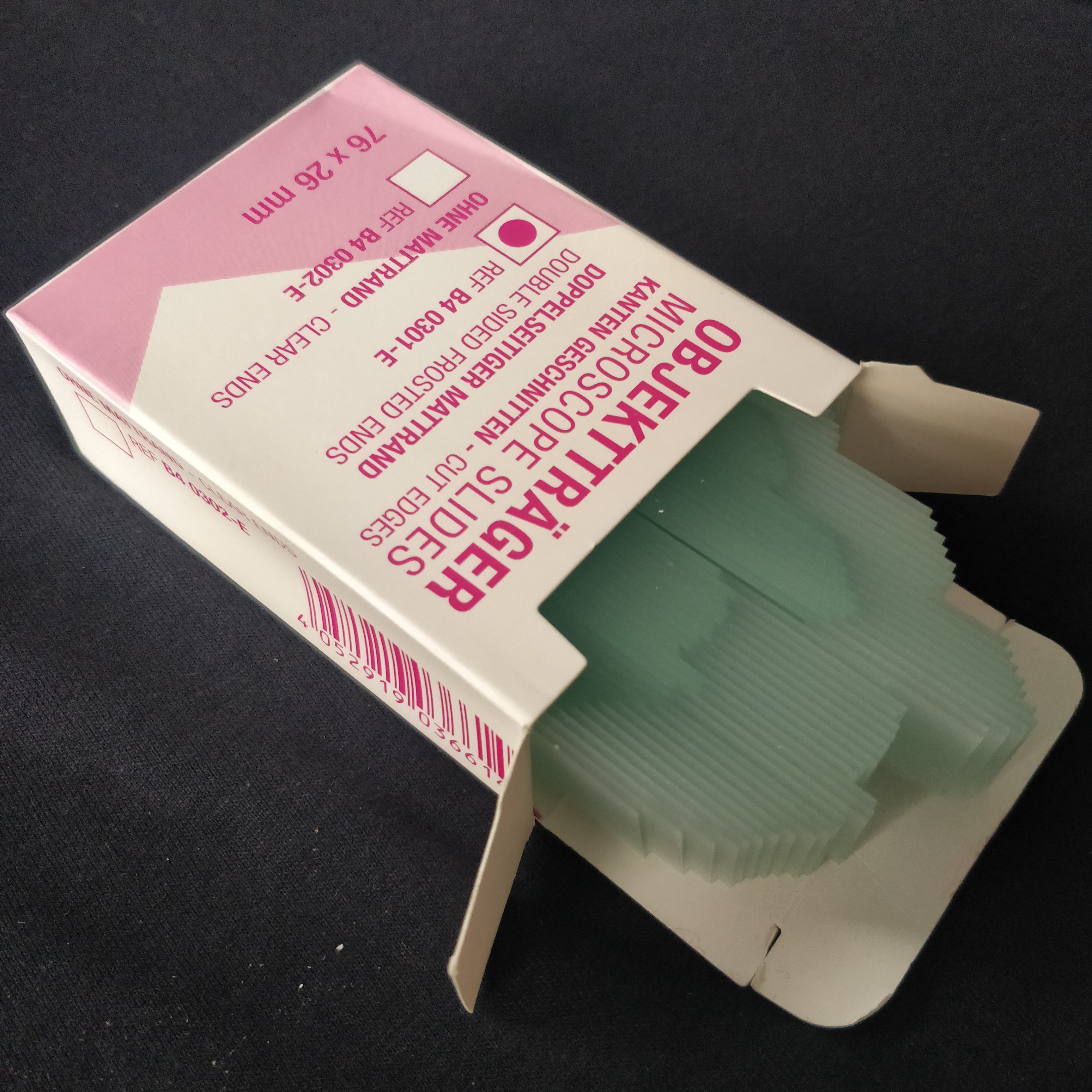 Slides50LA | 50 pc slides with frosted edge, rounded corners, in laboratory quality | 8.90 EUR | |