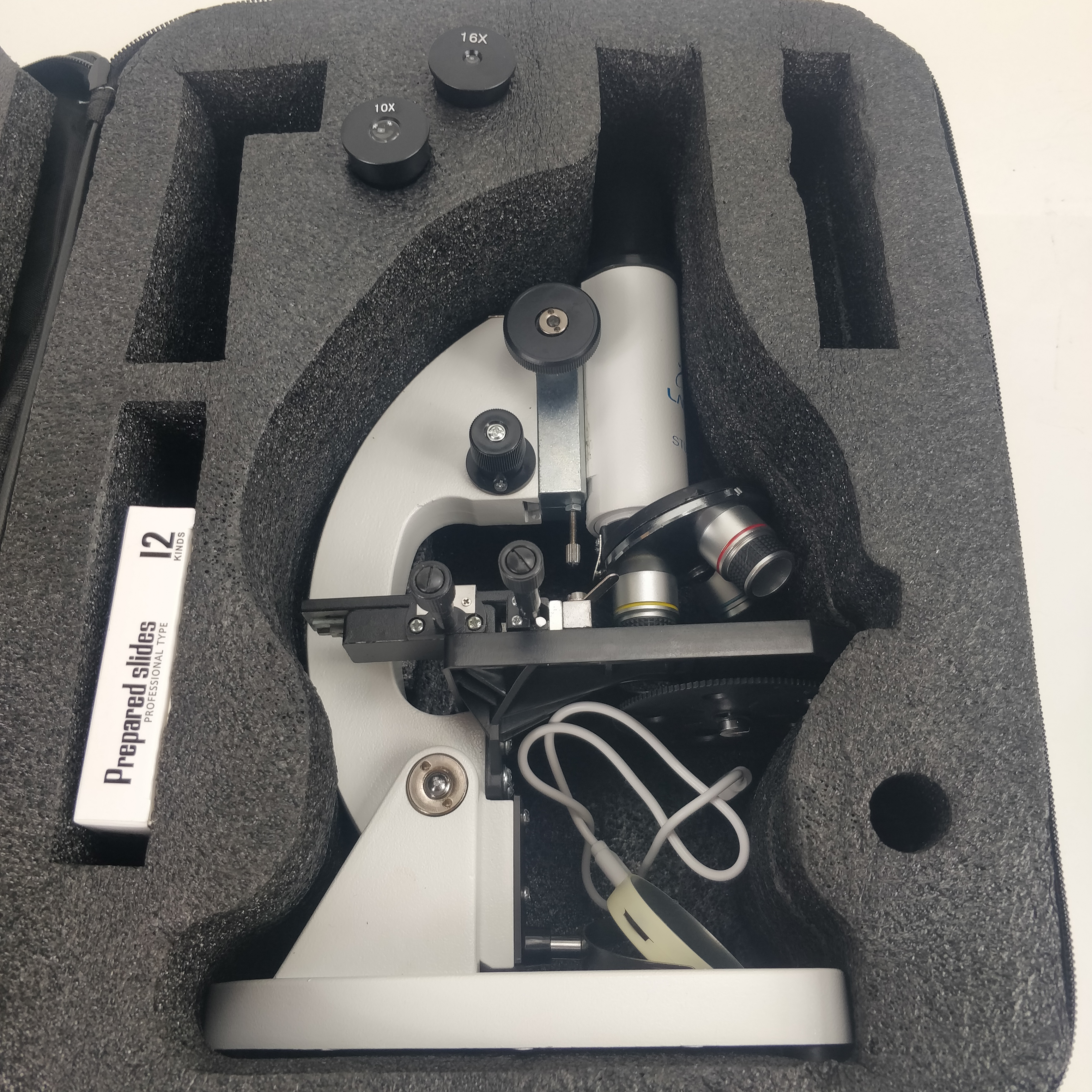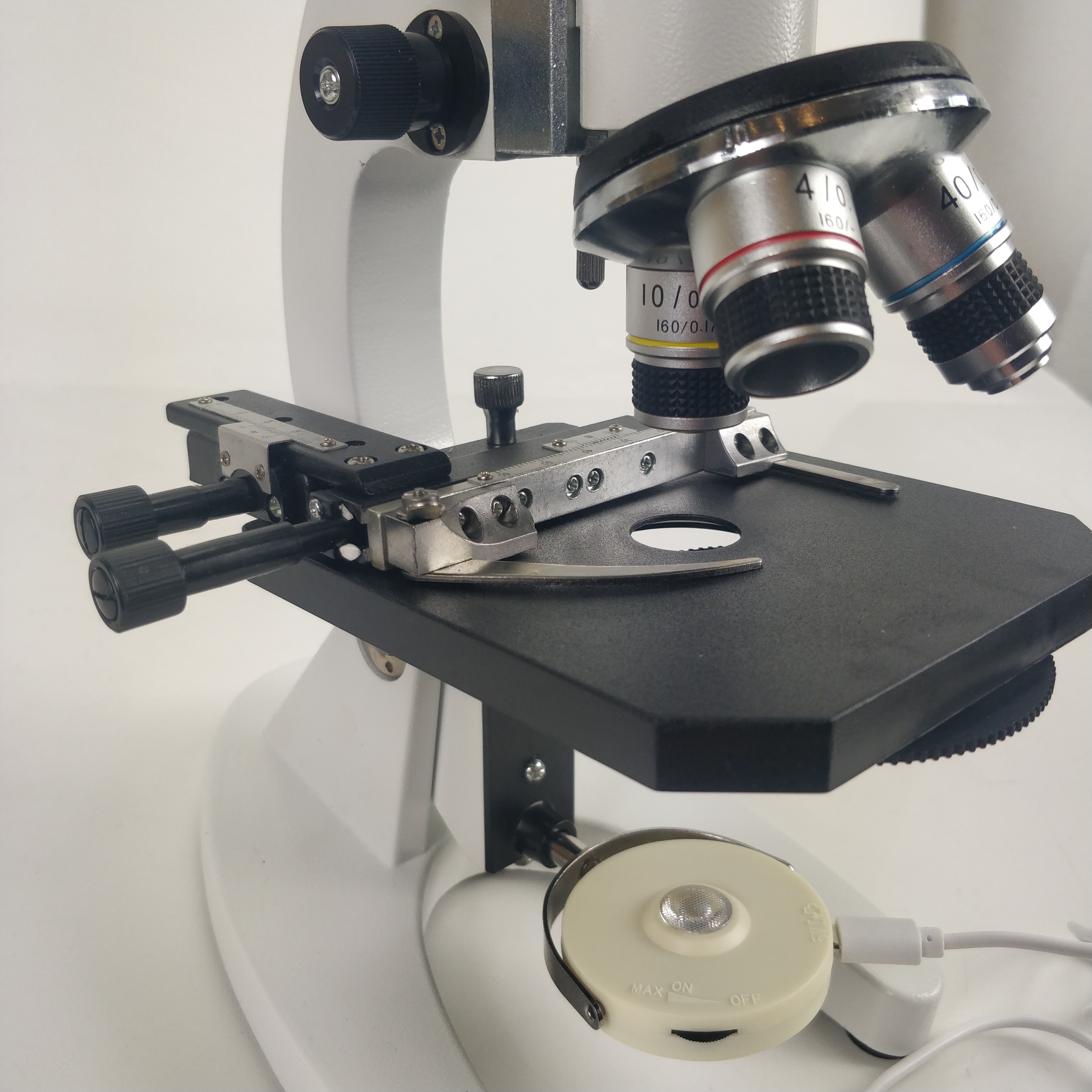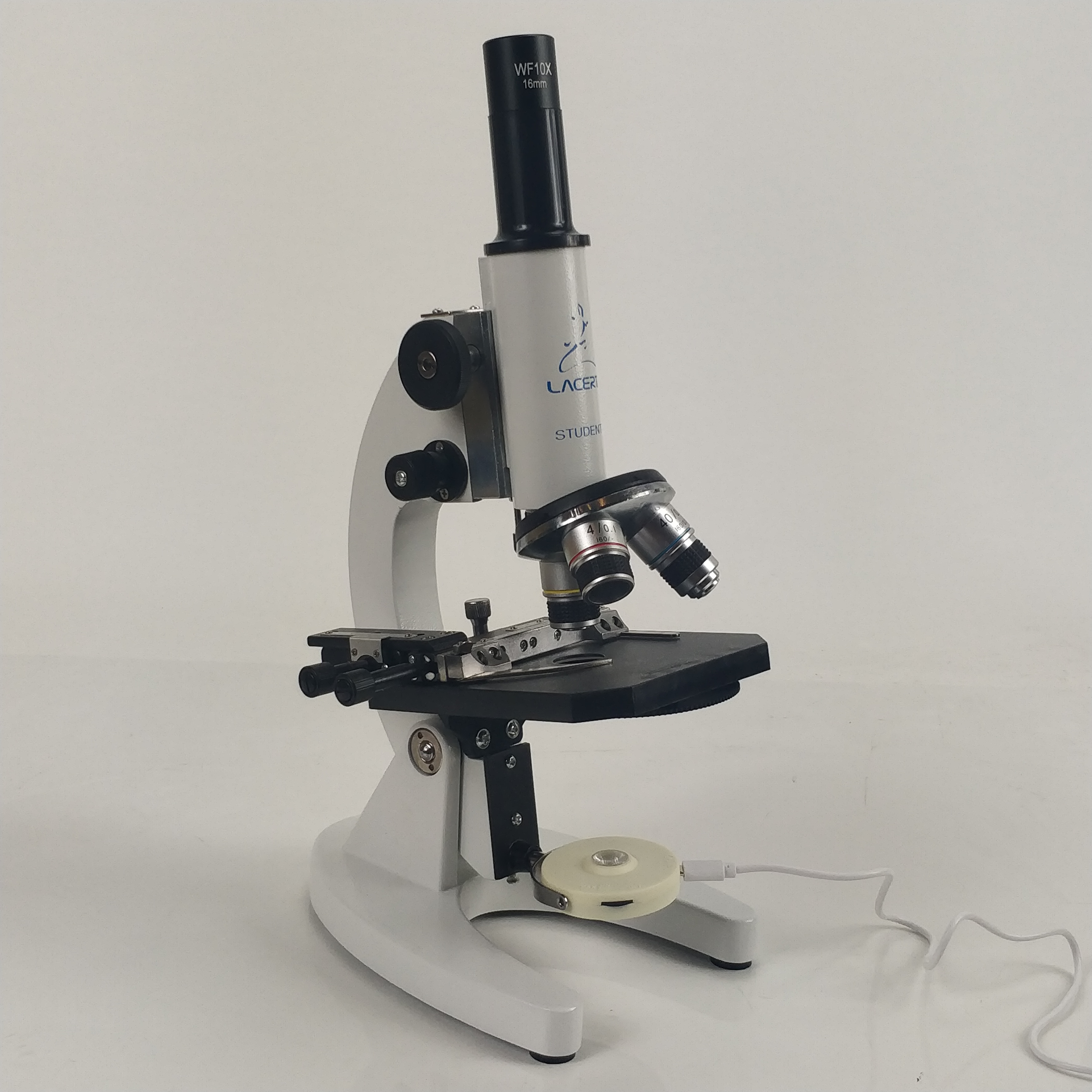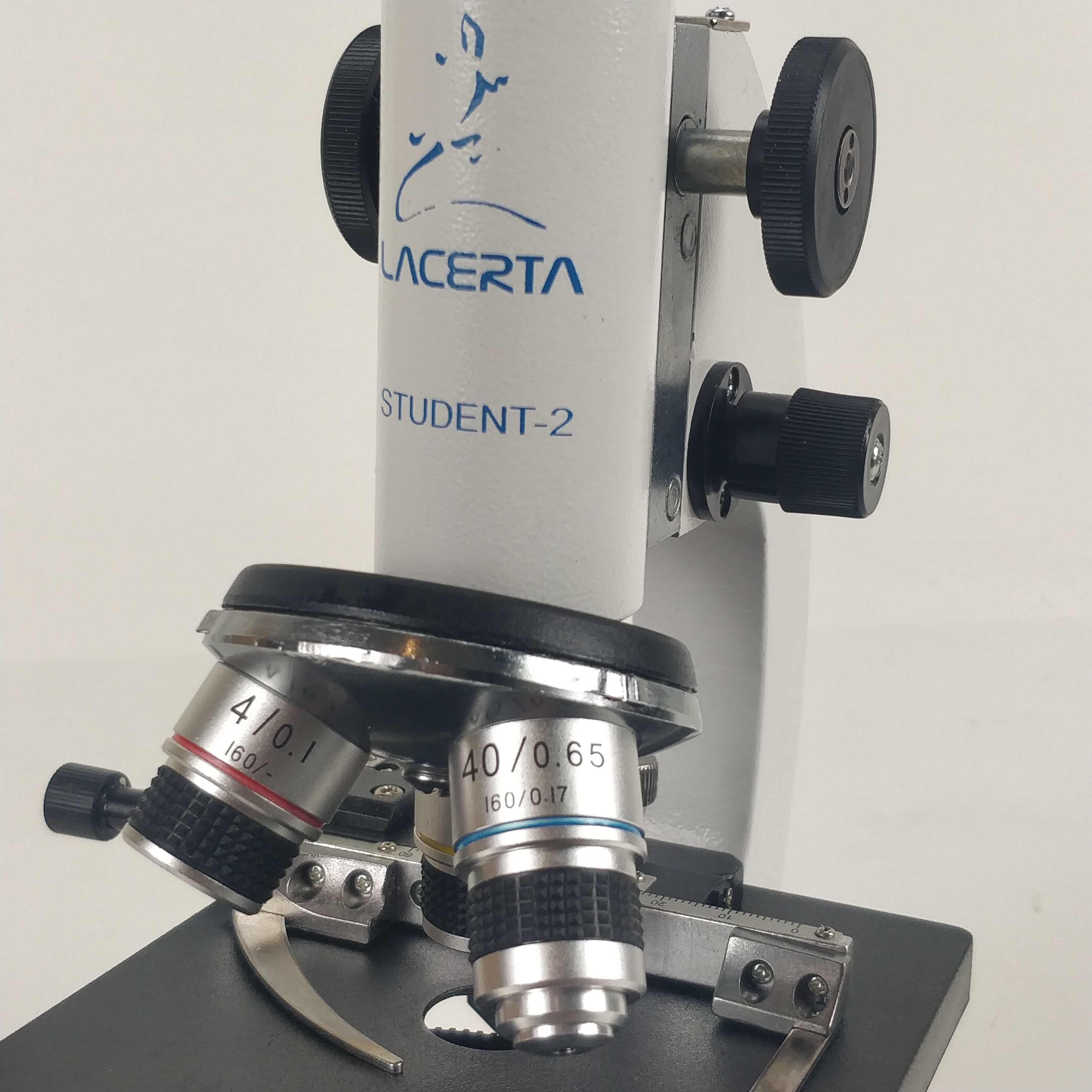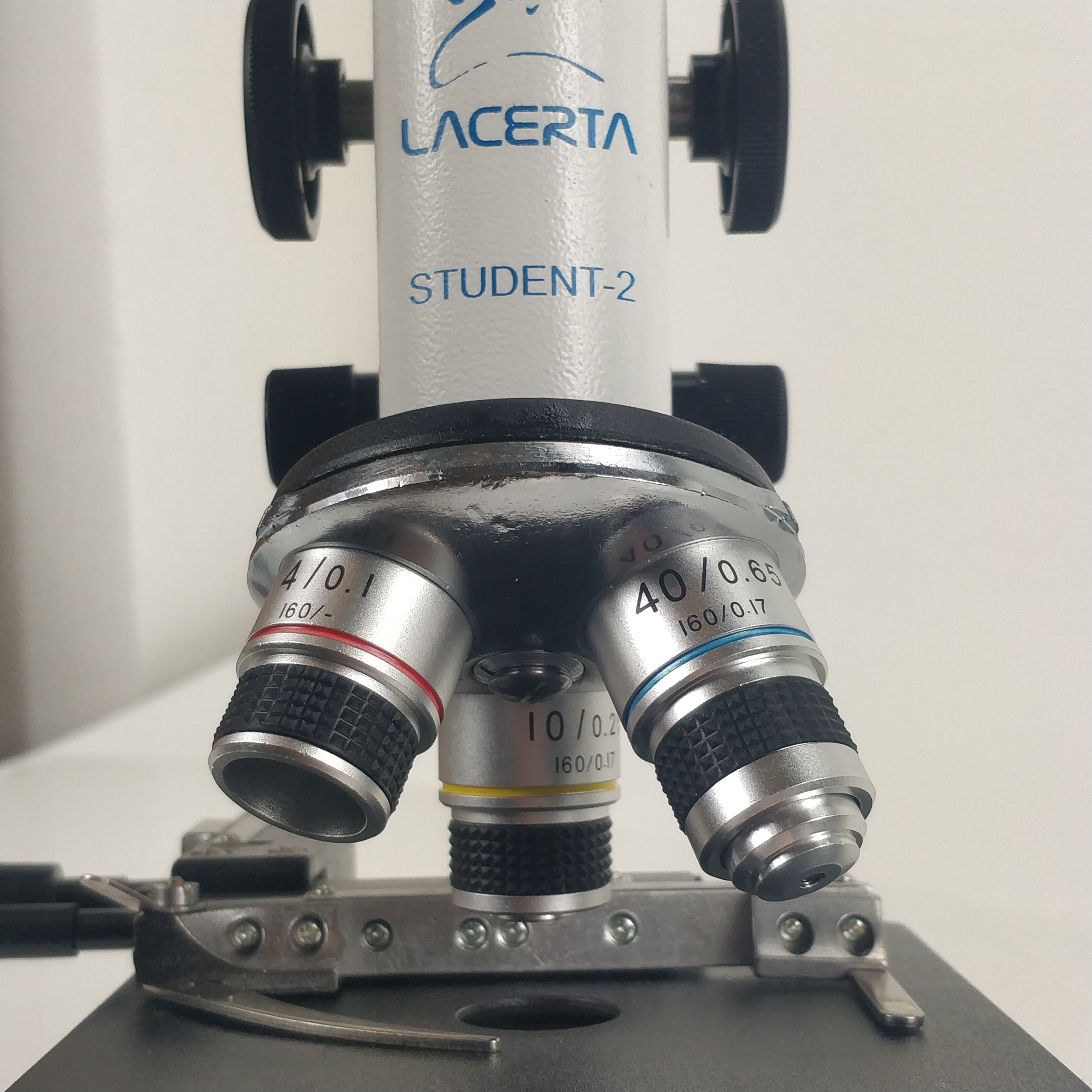 Das Student-2-plus Mikroskop setzt sich von anderen "Einsteiger-Mikroskope" dadurch ab, dass alle mechanische Bauteile aus Metall hergestellt sind. Keine zerbrechliche Kunststoffteile, kein Plastikzahnrad bei Fokussierung, welche nach kurzer Zeit ausleiert und von sich verstellt. Die drei Objektive (4x, 10x, 40x) sind selbstverständlich aus Glaslinsen hergestellt und genormt: dadurch lässt sich das Mikroskop mit höheren Vergrößerungen bis zum Ölimmersionsbereich erweitern.