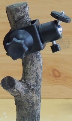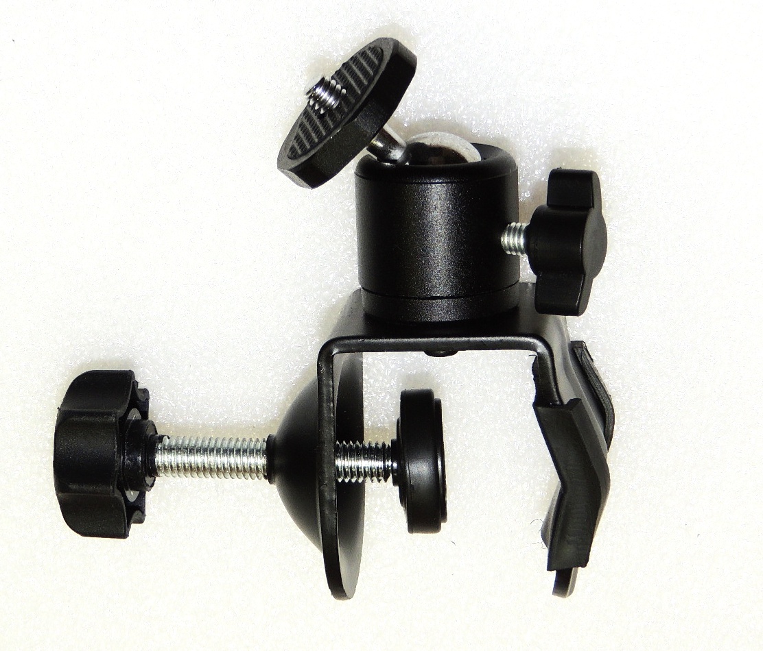 An die Klemme ist ein kompakter Kugelkopf mit 1/4" Fotogewinde angebracht, welcher Kleininstrumente (Nachtsichtgeräte, Entfernungsmesser, Ferngläser durch L-Adapter, Kleinspektive, Fotoapparate, Wildkameras usw...) bis 2kg Eigengewicht sicher tragen kann.