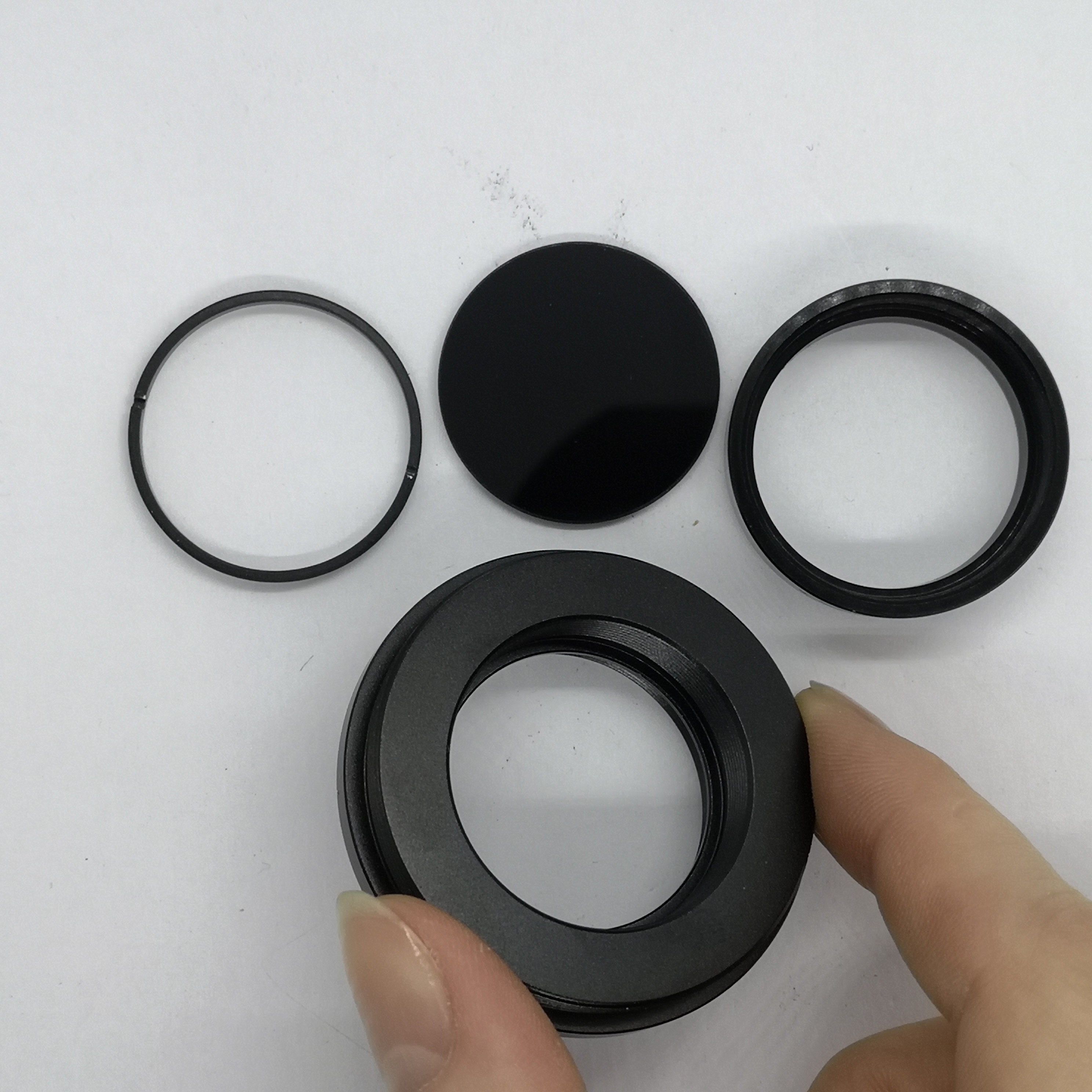 Der Adapter kann aber auch gleich als Filterfassung dienen: Ein 1,25" Filter kann aus seiner Originalfassung rausgenommen werden und in den T2T2pM28 Adapter direkt eingelegt werden. Um das Filterglas im T2T2pM28 zu befestigen, kann der Ring der Originalfilterfassung verwendet werden (Gewinde M28,5x0,6). In dieser Weise kann z.B. der ND3.0 Filter im 1,25" Lacerta Herschelprismen-Set fix eingebaut werden.