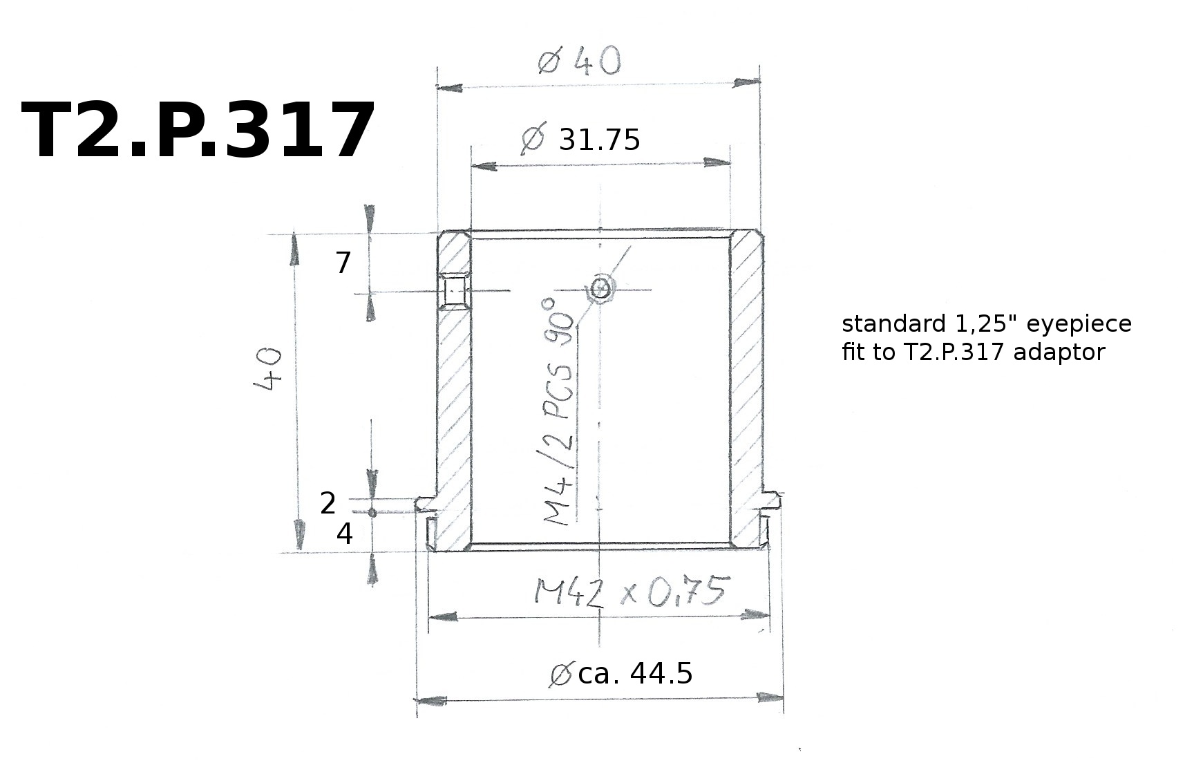 T2center317 | CenterLock Eyepiece holder (very short) from T2 to 31,7mm eyepiece | 34.90 EUR | |