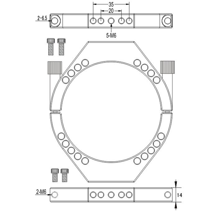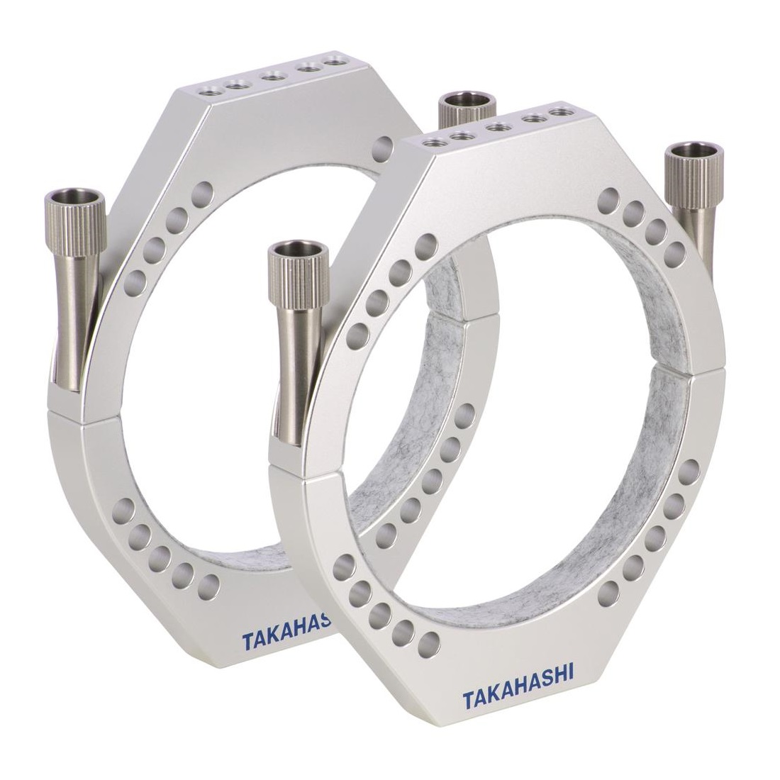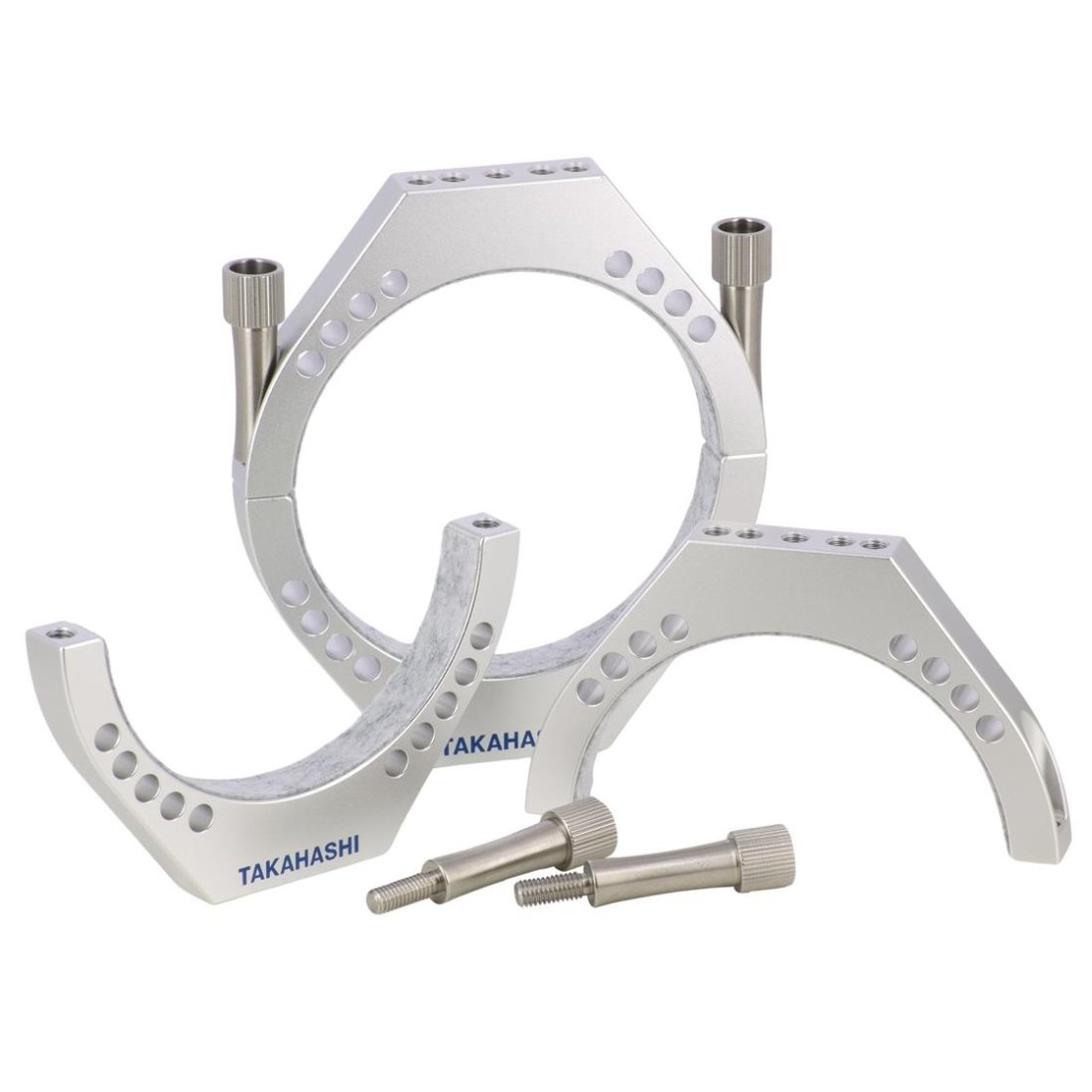Für den FCT-65D hat Takahashi neue Schellen konstruiert, erstmals verwendet man gefräßte bzw. geschnittene Schellen, bisher waren ausschließlich welche aus Guss üblich. Die silber eloxierten Schellen haben einen Innendurchmesser von 95mm und zur Gewichtseinsparung mehrere Löcher.