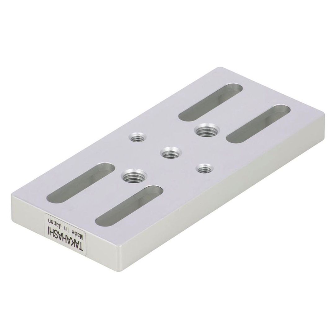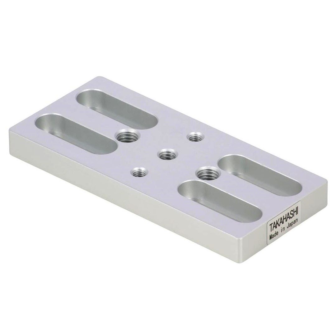 Diese Platte kann oben auf die neue Generation der Takahashi-Rohrschellen befestigt werden. Sie ermöglicht die einfache Montage von weiterem Zubehör, es sind z.B. zwei M8 Gewinde mit 35mm Abstand vorhanden, damit können die gängigen Takahashi-Rohrschellen direkt befestigt werden. Außerdem kann das Guidescope GT-40 montiert werden.