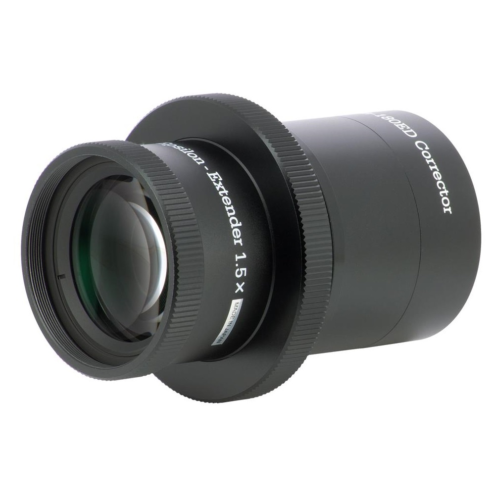 Takahashi ist es gelungen, für den Epsilon-180ED einen Extender zu entwickeln, der die ausgezeichnete Sternabbildung auf der Achse wie im Feld beibehält. Die Brennweite wird um den Faktor 1.5x auf 770mm verlängert (f/4.3), daher ist der Epsilon auch für die Fotografie kleinerer Objekte geeignet, was das Einsatzspektrum deutlich erweitert.