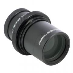 Dazu ist optisch ein hoher Bauaufwand erforderlich, der Extender ist mit 7 Linsen in 5 Gruppen aufgebaut. Er ist eigentlich als brennweitenverlängernder Komakorrektor zu verstehen, er korrigiert mindestens so gut wie der originale 2-linsige Korrektor, beim E-180ED sind das Spot-Größen von nur 2 Mikrometer auf der Achse und maximal 5 Mikrometer in den Ecken vom Vollformat. Auch die Ausleuchtung ist mit 60% bei Vollformat erfreulich gut. Er ist so konstruiert, dass sich der Fokus im Vergleich zum Korrektor nicht oder nur minimal verschiebt, ein vorhandenes Setup muss daher nicht neu konfiguriert werden!