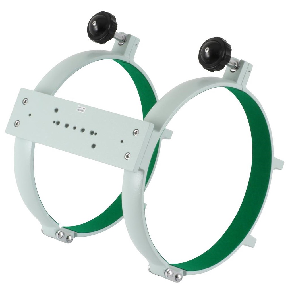 Massive Guss-Rohrschellen für das Takahashi Mewlon-250CRS, Durchmesser 280mm, mit langer 280mm Brücke, der Lochabstand (Rohrschellen-Mitte) ist 240mm.