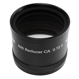 Dieser große Reducer ist speziell für den CCA-250 Astrografen gedacht und bis zum 6x4,5 Mittelformat geeignet. Er reduziert die Brennweite um den Faktor 0.72x auf lichtstarke 890mm (Blende f/3.6). Er besitzt einen 4-linsigen Aufbau und erzeugt einen immens großen Bildkreis von 60mm, ein herausragendes Setup was seinesgleichen sucht!